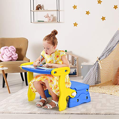 Convertible Activity Table With Large Storage Box Blue Learning Cup Holder And Groove Design For Toddlers